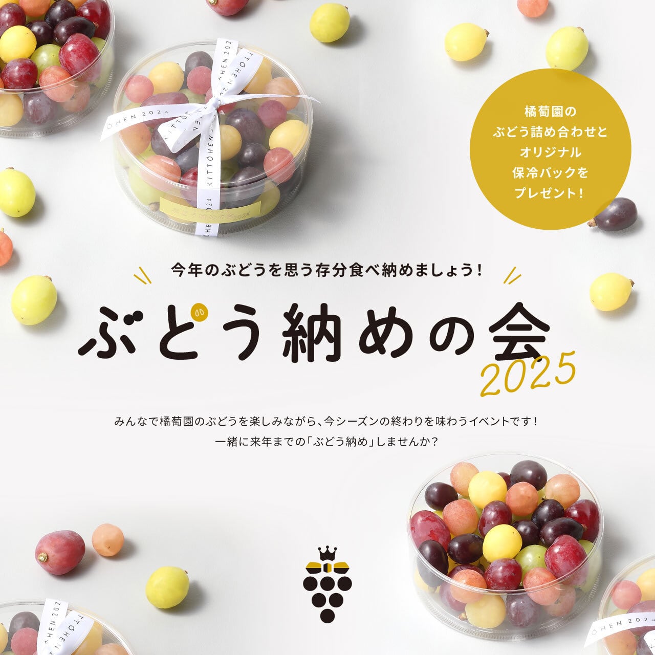 橘萄園ぶどう納めの会2025では、みんなで橘萄園のぶどうを楽しみながら、今シーズンの終わりを味わうイベントです!